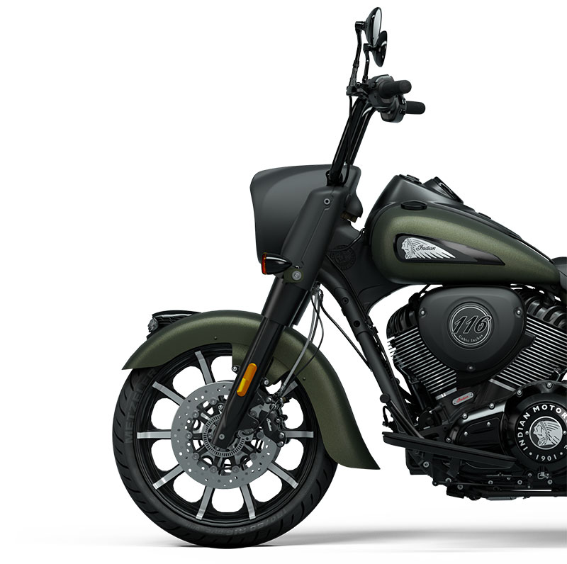 Indian Springfield Dark Horseは、より多くを求める人のためのモデルです。流線型のスタンス、パワフルなVツイン、不敵なスタイリングで、見た目通りの力強い走りを見せます。
