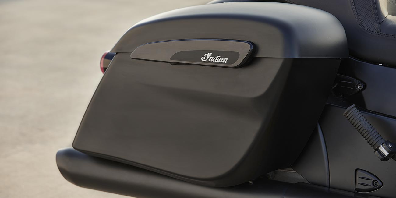 | 標準装備 | クイックリリース・ウインドシールド、リモートロック式ハードサドルバッグ、ハイウェイバー、ライドモード、ABS、クルーズコントロール、キーレスイグニッション、インディアン®スクリプトタンクバッジ、12V充電ポート |