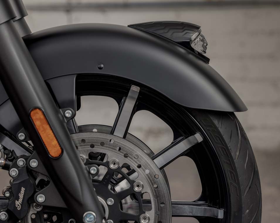 | 標準装備 | クイックリリース・ウインドシールド、リモートロック式ハードサドルバッグ、ハイウェイバー、ライドモード、ABS、クルーズコントロール、キーレスイグニッション、インディアン®スクリプトタンクバッジ、12V充電ポート |