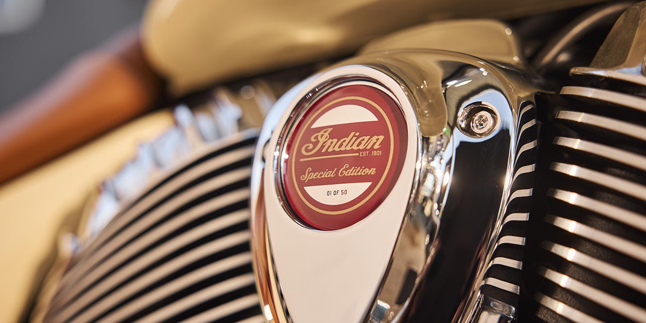 | 標準装備 | クイックリリースウィンドシールド、タン本革シート、リモートロック式ハードサドルバッグ、ハイウェイバー、パッセンジャーシート&シッシーバー、ライトバー、ライディングモード選択可能、ABS、クルーズコントロール、キーレスイグニッション、Indian®スクリプトタンクバッジ、12V充電ポート |